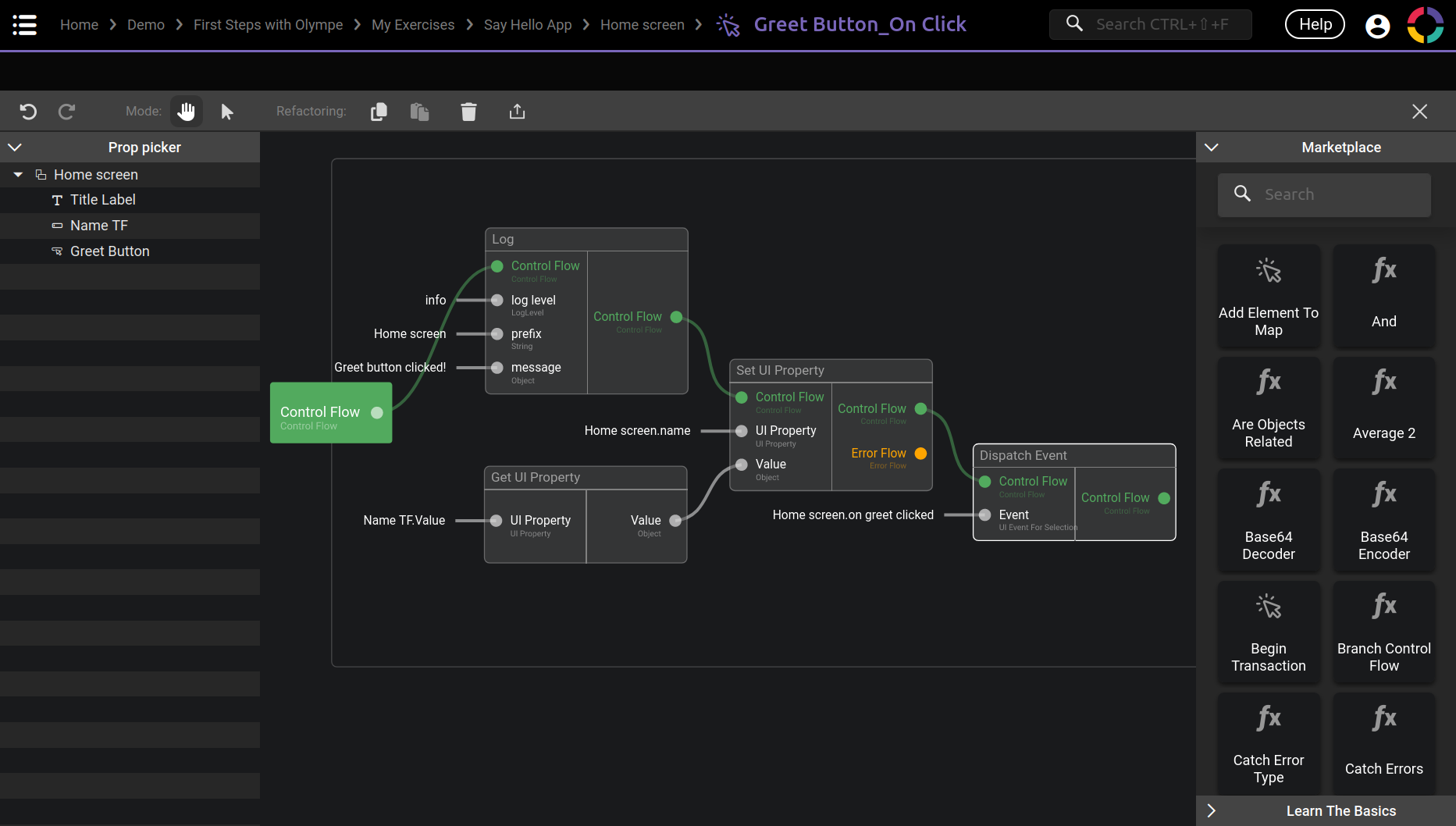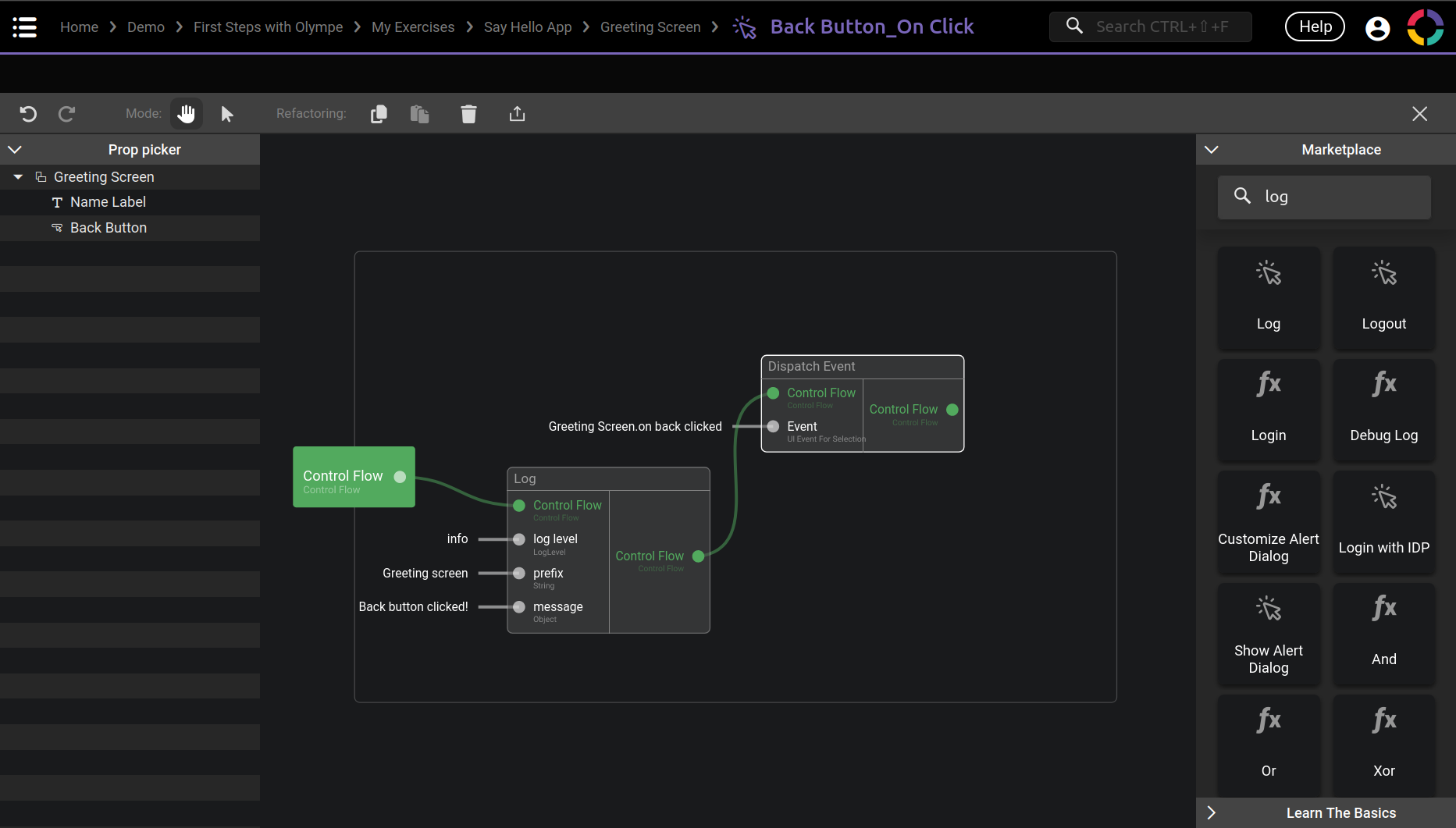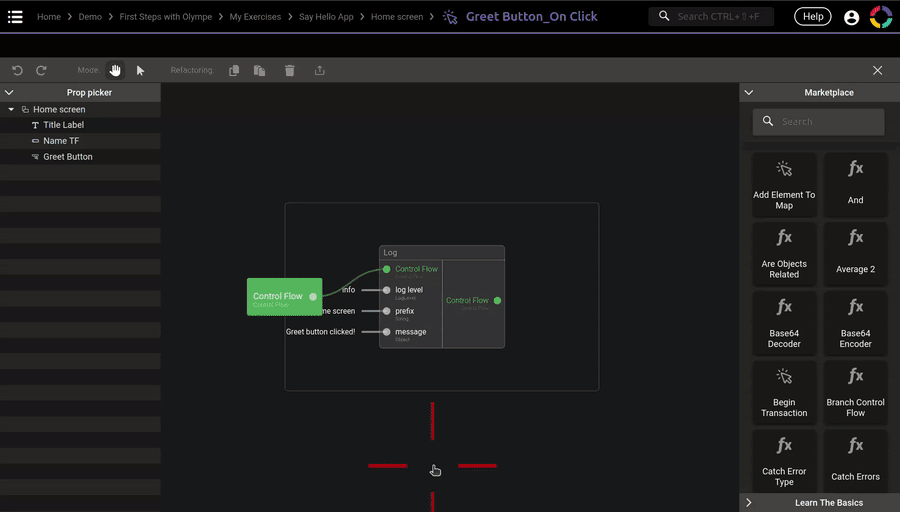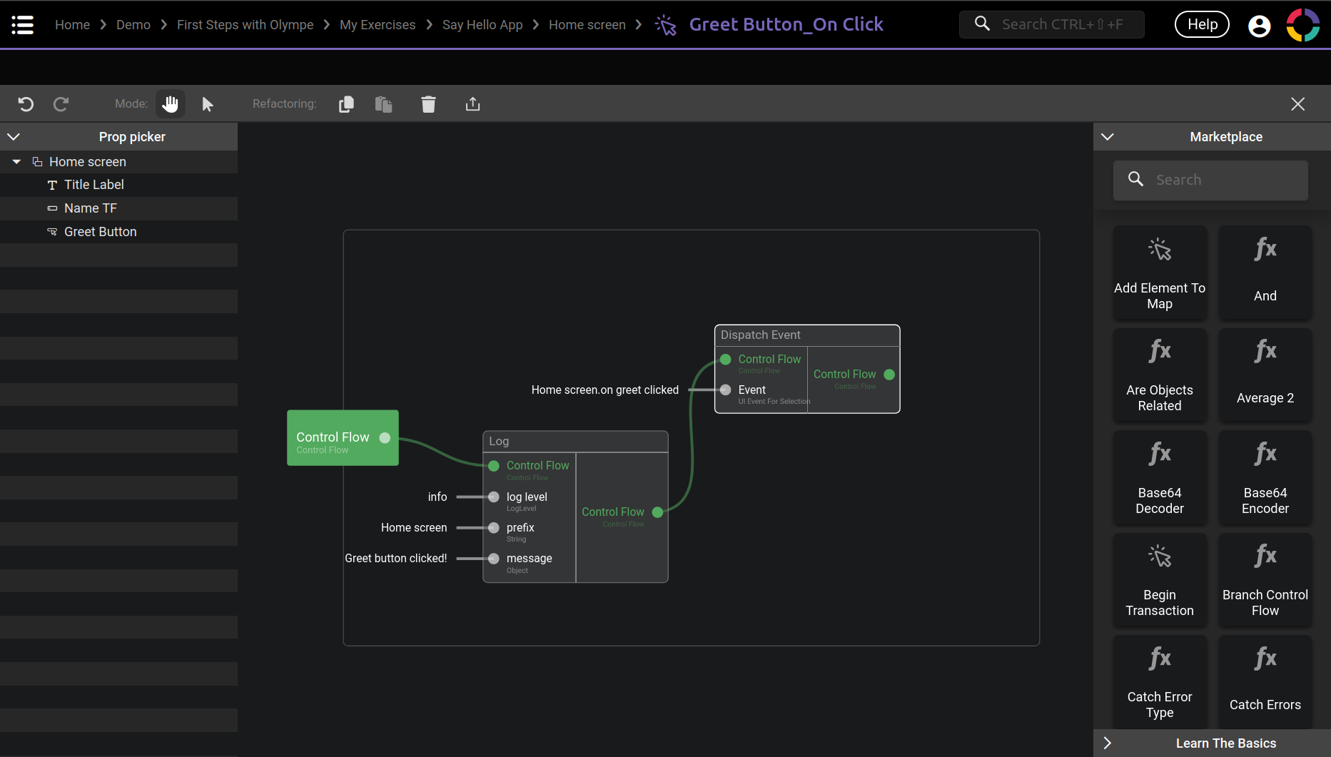 The Prop Picker method is very useful because it is much faster to use than the Marketplace. It allows us to access any properties or events on a component in the current screen, from a logic point of view. We will use it more and more so don't worry if it is not clear yet.