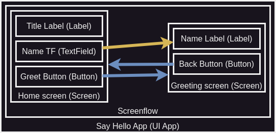 Little exercise now :evil: Reproduce what you just did for the Greet button but for the Back button in the other screen!