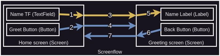 That's it! What we just did is: when the user click the greet button, the on greet clicked event of the screen is also triggered 🎉