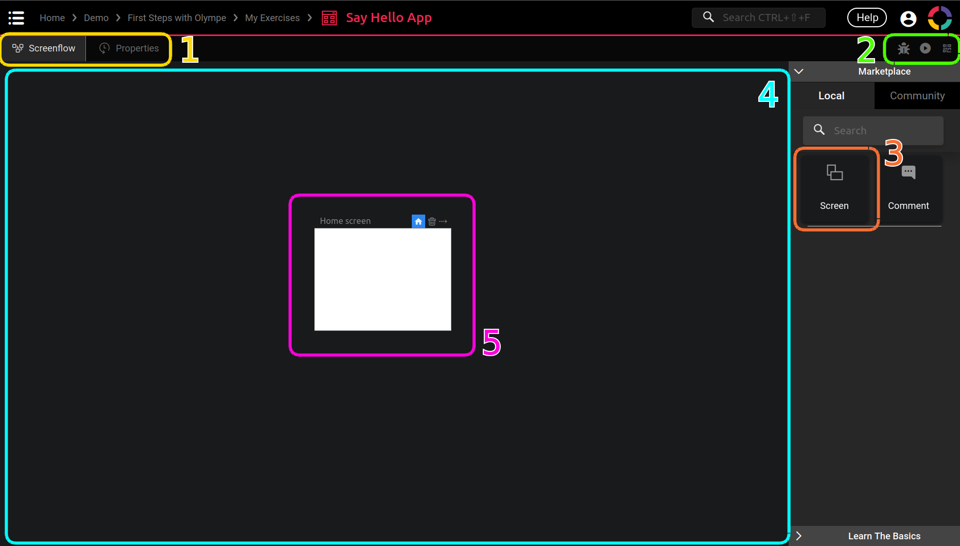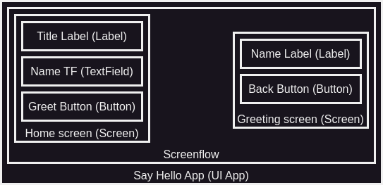 5. This white rectangle represents a Screen and is called Home screen. A UI App always has at least one screen.