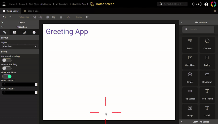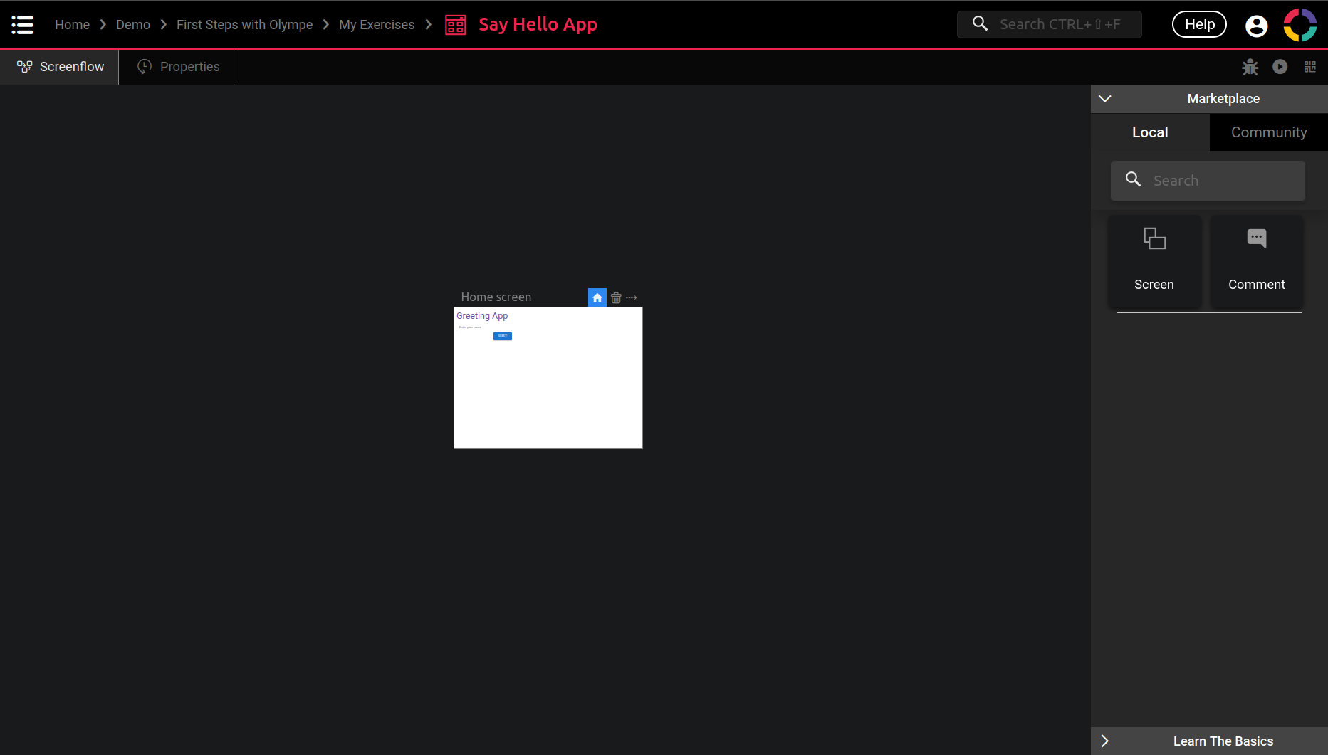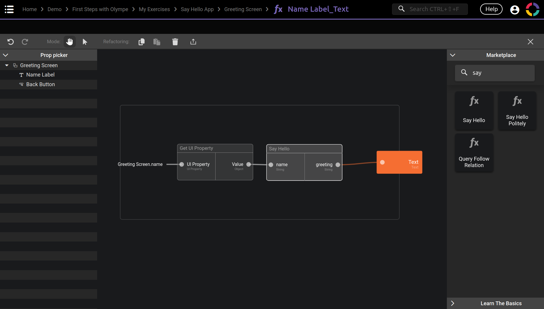 Next you can create a new UI App from the Marketplace, call it Say Hello App and enter it, you should see this: