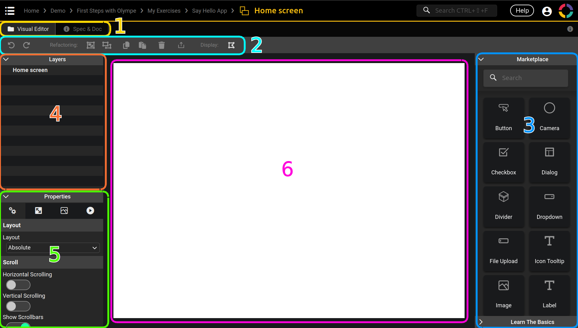 6. Finally this in the main area of the tab. Where we will add Visual Components from the Marketplace and preview how the screen will look like 😉