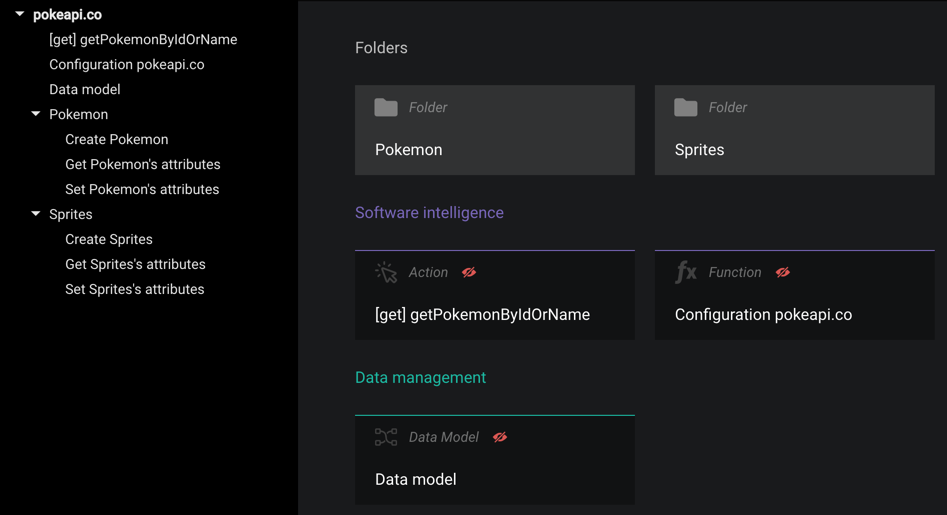 • Check the generated folder, you will see that it contains a data model, as well as functions to get the API's configuration, call the API, and manipulate the objects returned by the API: Pokemons and Sprites