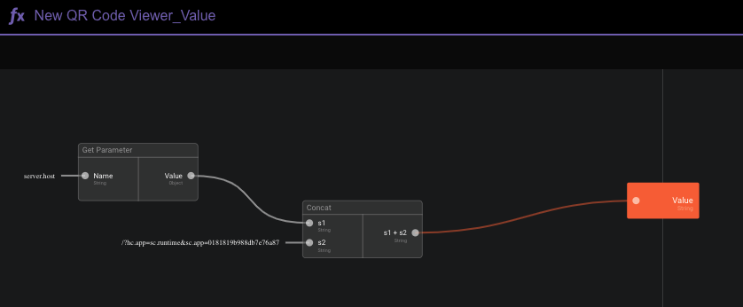 server.hostas the string input value for theGet Parameterbrick, and the string copied above in theConcatbrick for thes2input: