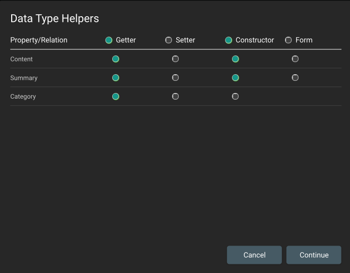 Create Setters: Actions to update an Object ( e.g. Set Note’s Content) with the object (the note) and the attribute value (content) as inputs.